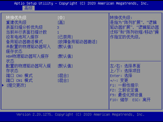 当Port CN0/CN1 Mode为RAID时,只能配置raid,无法配置jbod