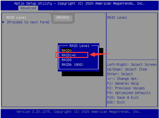 选择Raid1+0,点击Proceed to next Form。