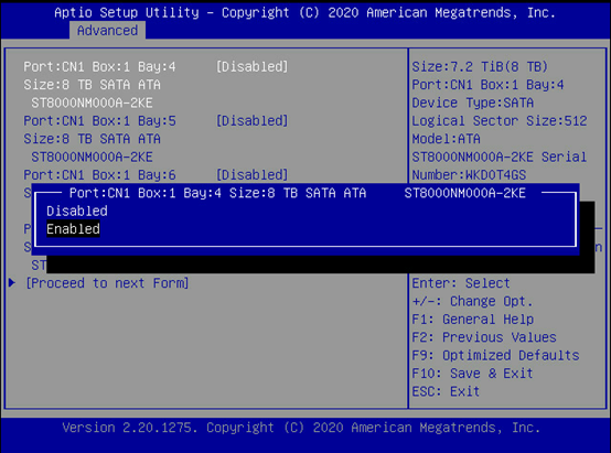 将要做阵列的硬盘设置成Enable模式。