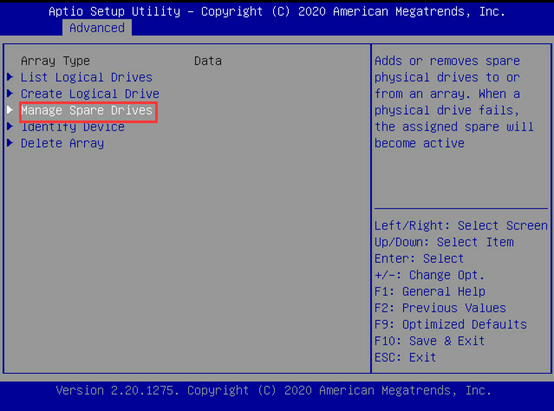 选择Manage Spare Drives。