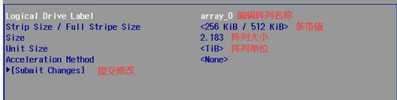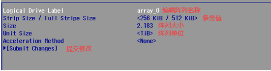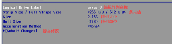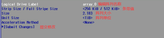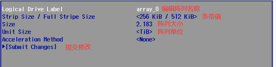 在此界面编辑阵列信息,比如阵列名称、条带值、阵列大小以及单位,填好以后提交修改。