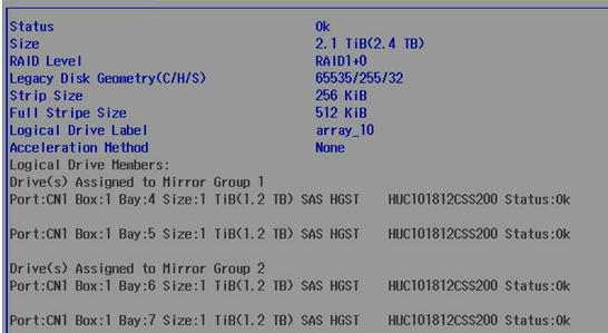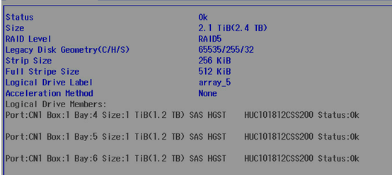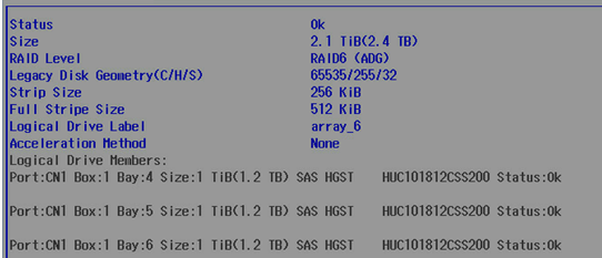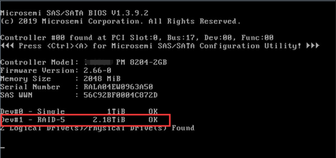 当开机自检的时候会在自检界面看到阵列情况,如下图所示。