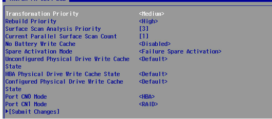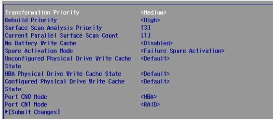 当Port CN0/CN1 Mode为HBA时,所有盘视为jbod,无法配置raid。