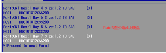 选择阵列级别,RAID6。继续点击Proceed to Form进入下一步。