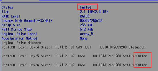以raid5举例,如果阵列中有两块或以上的盘掉线,则raid状态变为Failed,此时数据不可用,此时需要找数据恢复公司进行数据的恢复。