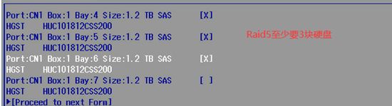 选择阵列级别,RAID5。继续点击Proceed to Form进入下一步。