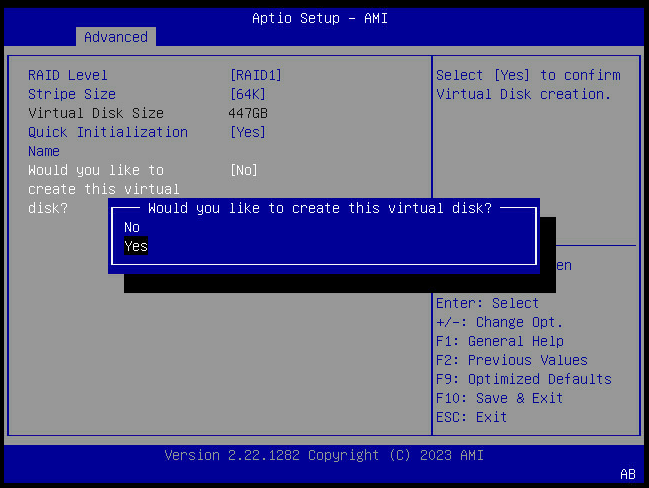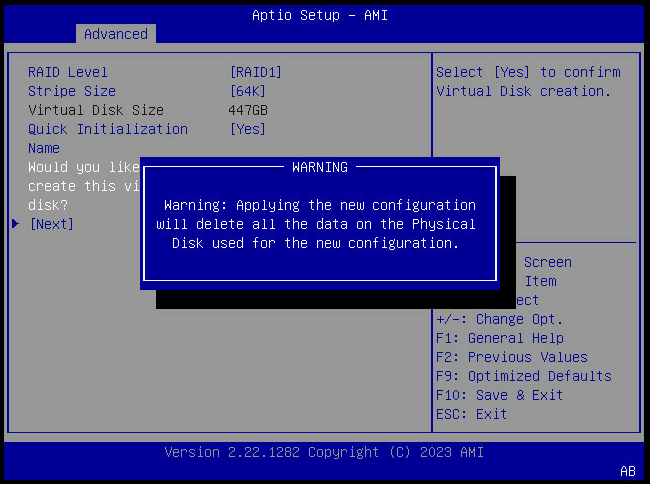 阵列卡会提醒数据会丢失。确认不保留数据后,回车即可