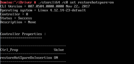 domino:~# ./storcli64 /c0/e0/s1 start rebuild