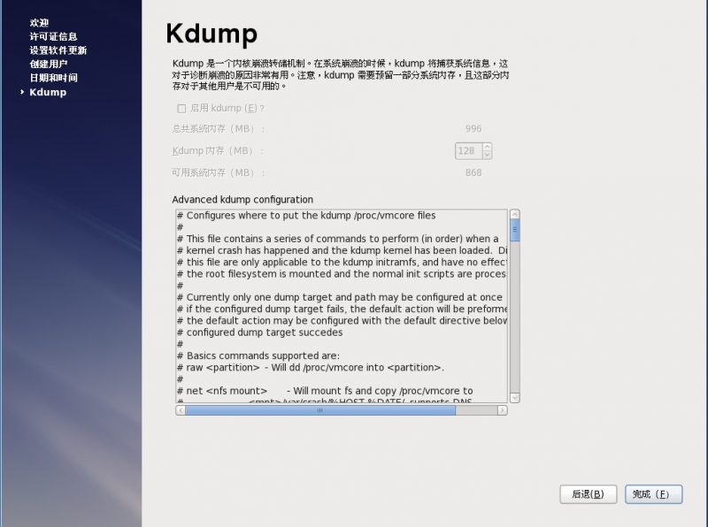 Kdump建议启用,不启用也没关系,点击完成结束安装。