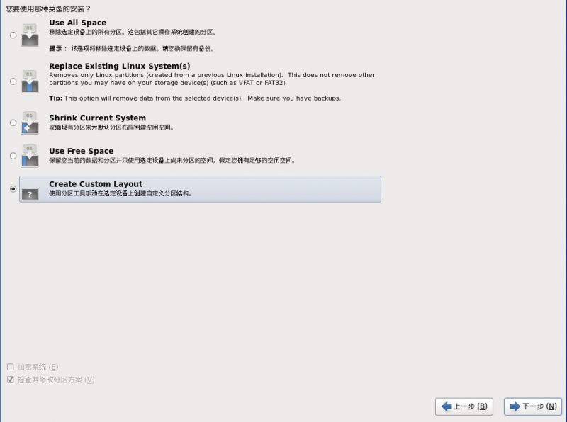 选择Create Custom Layout(自定义分区),可以根据您的需要进行分区。