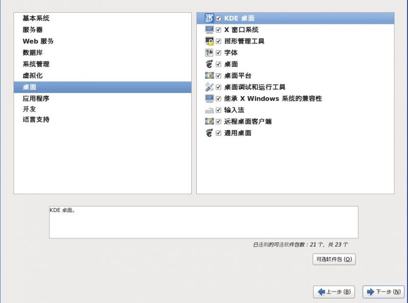 如果需要图形化界面,还需要勾选“桌面”下面的所有组件。