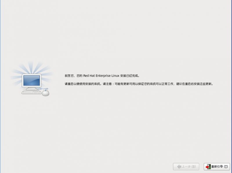 安装完成后取出光盘,点击“重新引导”按钮重启服务器,从硬盘启动系统。