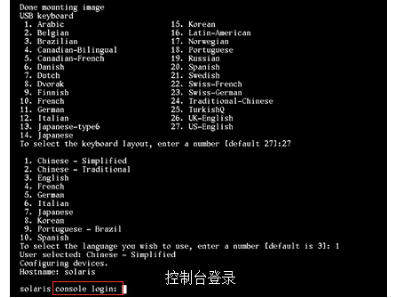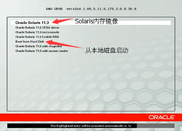 在Grub中选择哪种模式启动,如果不操作,没人进入Solaris内存镜像模式,本次选择默认启动模式。