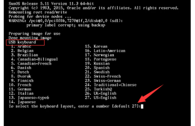 键盘模式,默认是27美式键盘。一般国内都是用美式键盘,此处输入27或直接回车。